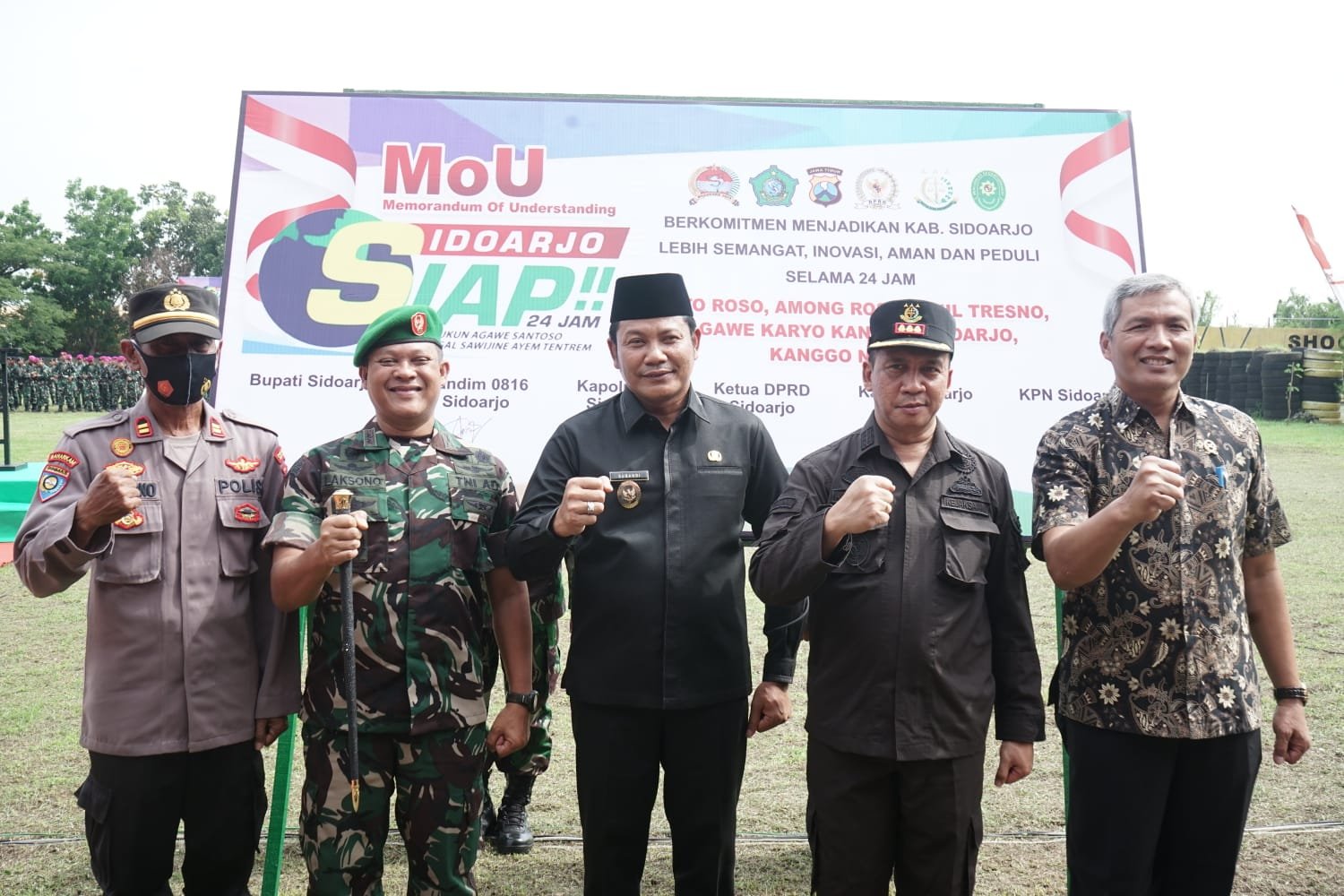 Sementara itu, Dandim 0816 Sidoarjo, Letkol Inf. Masarum Djatilaksono mengatakan kesiapannya menjalankan program Sidoarjo Siap 24 jam tersebut. Kali ini program Sidoarjo Siap 24 jam mengusung tema “Guyub rukun agawe santoso manunggal sawijine ayem tentrem”. Tema tersebut dapat diartikan bahwa dengan kekompakan dan kebersamaan akan terciptanya kesejahteraan, dengan menyatukan tekad dan semangat akan terciptanya situasi yang aman dan nyaman selama 24 Jam. Sinergitas tiga pilar yang ada harus terus dijaga dan dikuatkan. TNI, Polri bersama Pemkab Sidoarjo akan bahu membahu menjaga keamanan Kabupaten Sidoarjo.