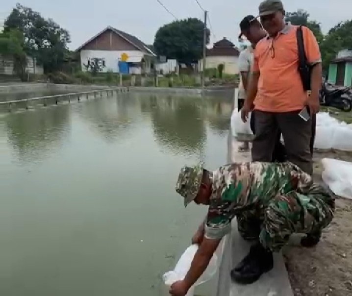 Pantauan dilapangan sebelum penebaran benih ikan bawal kuarng lebih 10.000 ekor, acara diawali dengan tasyakuran dan doa bersama selanjutnya dilakukan penebaran benih ikan oleh Kades Kebonagung, Babinsa, perangkat desa dan perwakilan warga sekitar kolam. (Jay)