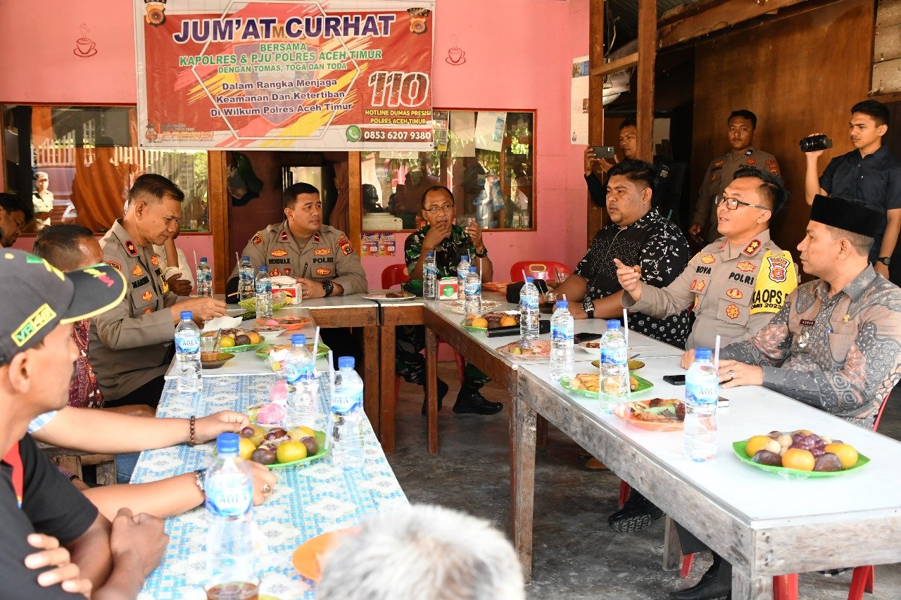Kapolres Aceh Timur Polda Aceh AKBP Nova Suryandaru, S.I.K. melaksanakan kegiatan Program Jumat Curhat untuk lebih dekat dengan masyarakat, dalam menjalin silaturahmi guna menciptakan situasi kamtibmas tetap kondusif.