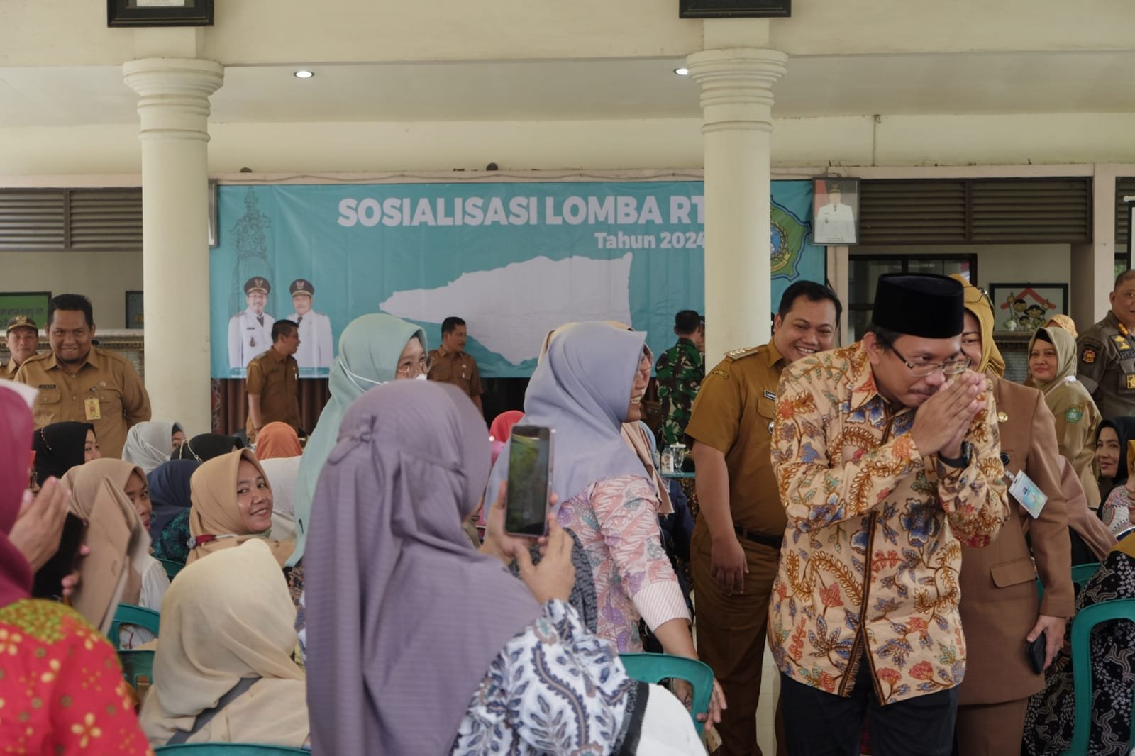 “Kami turun kebawah untuk membantu sosialisasi Lomba RT ini untuk menyadarkan dan mengajak panjenengan semua mbok yo o kerjo bakti itu jadi rutin, mbok yo o kumpul-kumpul guyub wargae rijik-rijik ojok ngenteni tujuh belas agustusan,” ujarnya.