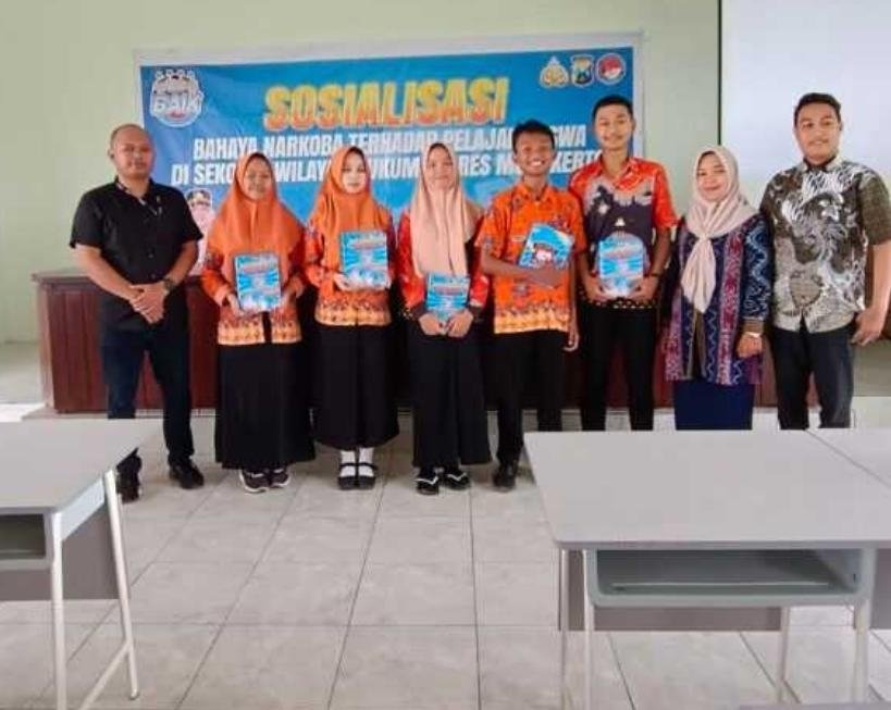 Satresnarkoba Polres Mojokerto Kabupaten mensosialisasikan bahaya narkoba di setiap instansi pendidikan kepada para pelajar di wilayah hukum Polres Mojokerto Kabupaten, sekaligus Satresnarkoba membagikan buku gratis dengan tema ” Mojokerto Bebas Narkoba, Menuju Generasi Emas”, berharap anak anak Indonesia bisa menuju generasi emas dan generasi yang cemerlang, tepatnya di Aula SMAS Islam Diponegoro, Kamis (07/03/2024).