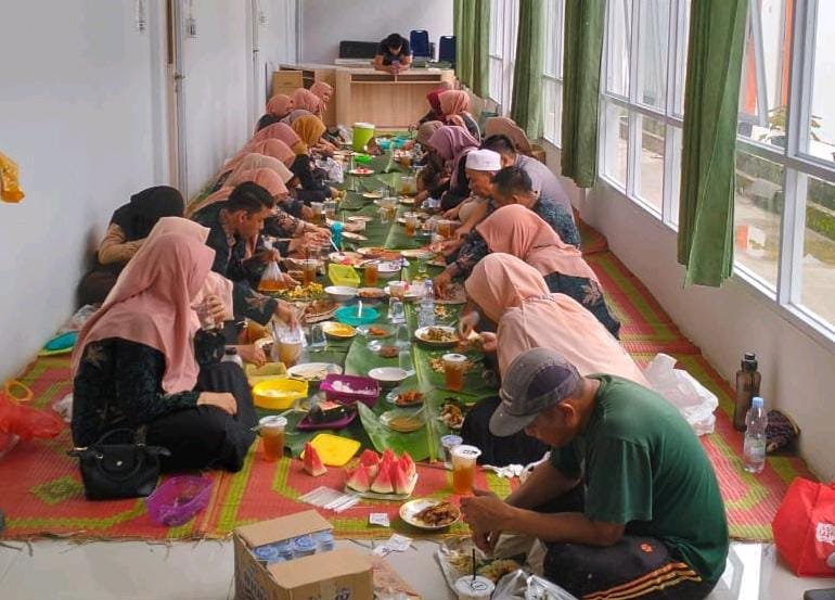 Makan bersama yang diadakan keluarga Besar puskesmas Sungai Rengas itu tampak sederhana menggunakan daun pisang untuk menikmati santapan sambut bulan ramadhan tersebut.