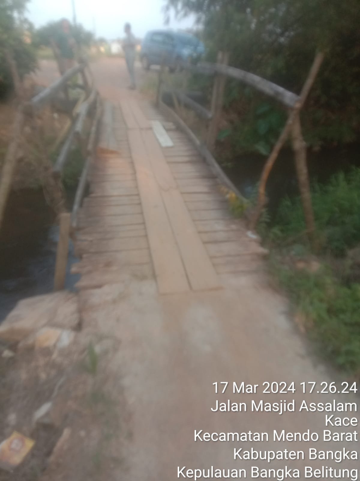 Majalah global.com, Bangka – Sungguh sangat di sayangkan meski sudah berulang kali masyarakat mengajukan perbaikan jembatan belum ada upaya pihak desa untuk mengatasi permasalahan ajuan masyarakat tersebut dan sudah sering terjadi masyarakat yang melintasi jembatan tersebut yang jatuh yang beralamat jalan penghubung sinar Surya ke perumahan syriah kace barat kabupaten Bangka.(17 Maret 2024)