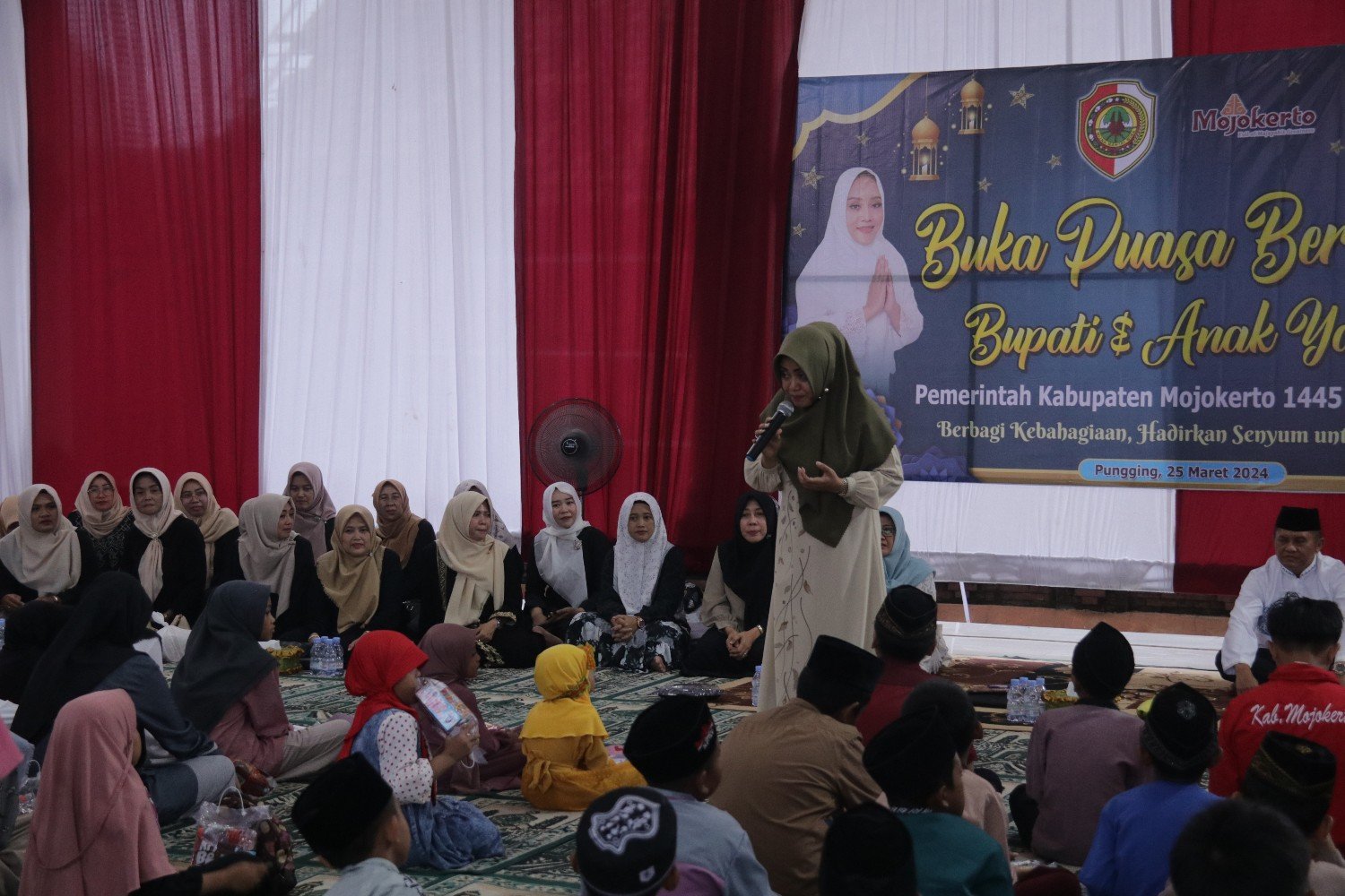 Kabupaten Mojokerto, majalahglobal.com – Bupati Mojokerto Ikfina Fahmawati kembali menggelar buka bersama anak yatim se-Kecamatan Pungging pada Senin, (25/3) sore di Pendopo Kecamatan Pungging, Kabupaten Mojokerto. Buka bersama yang diikuti sedikitnya 225 anak yatim tersebut turut diselingi dengan tanya jawab yang membuat para anak-anak antusias mengikuti buka bersama tersebut.