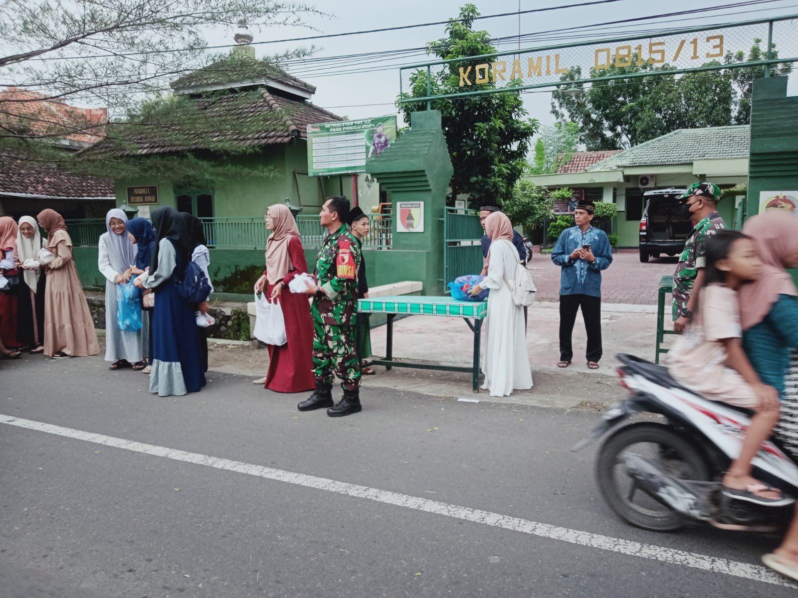 Pantauan di lapangan, antusiasme masyarakat terlihat saat personel Koramil bersama siswa-siswi SMAN 1 Kutorejo membagikan paket berbuka puasa.(Jay)