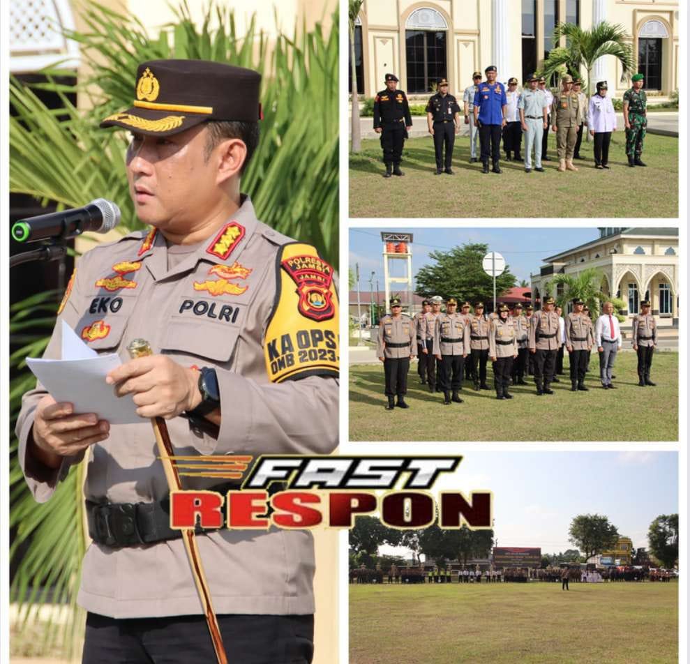 Kapolresta Jambi Kombes Pol Eko Wahyudi SIK MH memimpin langsung Apel Gelar pasukan yang dihadiri PJU Walikota Jambi, Para Kabag , para Kasat , para Kasi dan Para Kapolsek serta personel gabungan dari unsur TNI , Jasa Raharja , Dinas Perhubungan ,Pol PP , Pramuka Dinas Kesehatan dan pihak terkait lainnya dan awak media