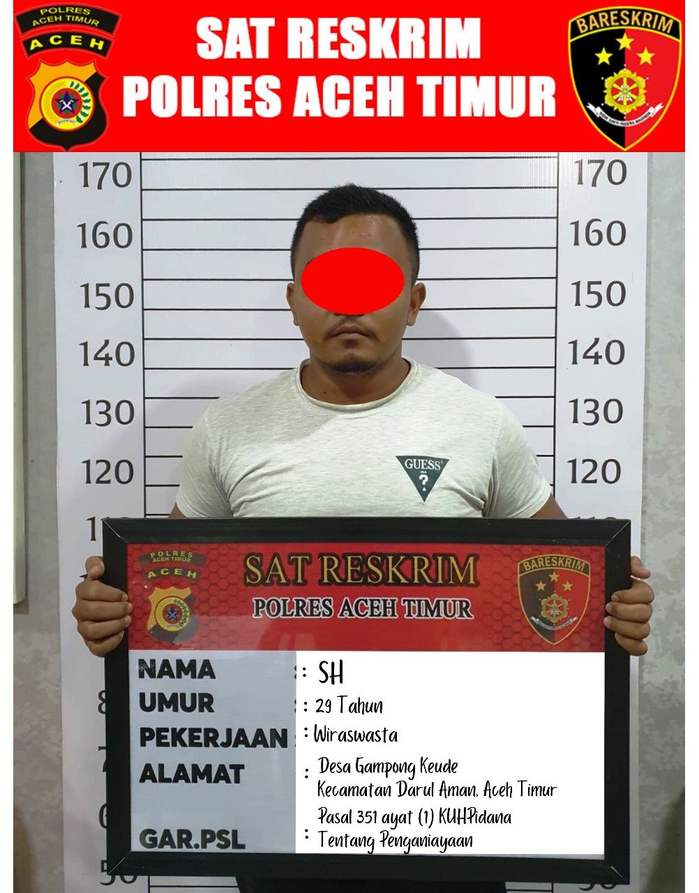 Anggota Opsnal (Resmob) Satreskrim Polres Aceh Timur Polda Aceh mengamankan pelaku penganiayaan karena kesal sering ditagih hutang.