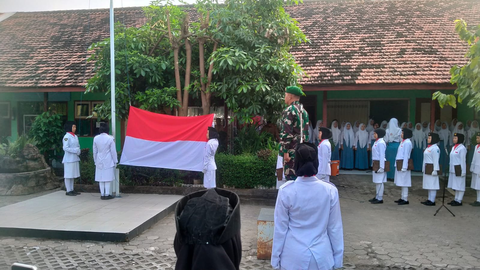 Kegiatan diawali Upacara Pengibaran Bendera yang dilaksanakan secara khidmat, dan turut dihadiri Kepala Sekolah SMKN 1 Sooko Dwi Fendi Dadang A, S.Pd., M.T., beserta seluruh dewan guru dan ratusan pelajar SMKN 1 Sooko.