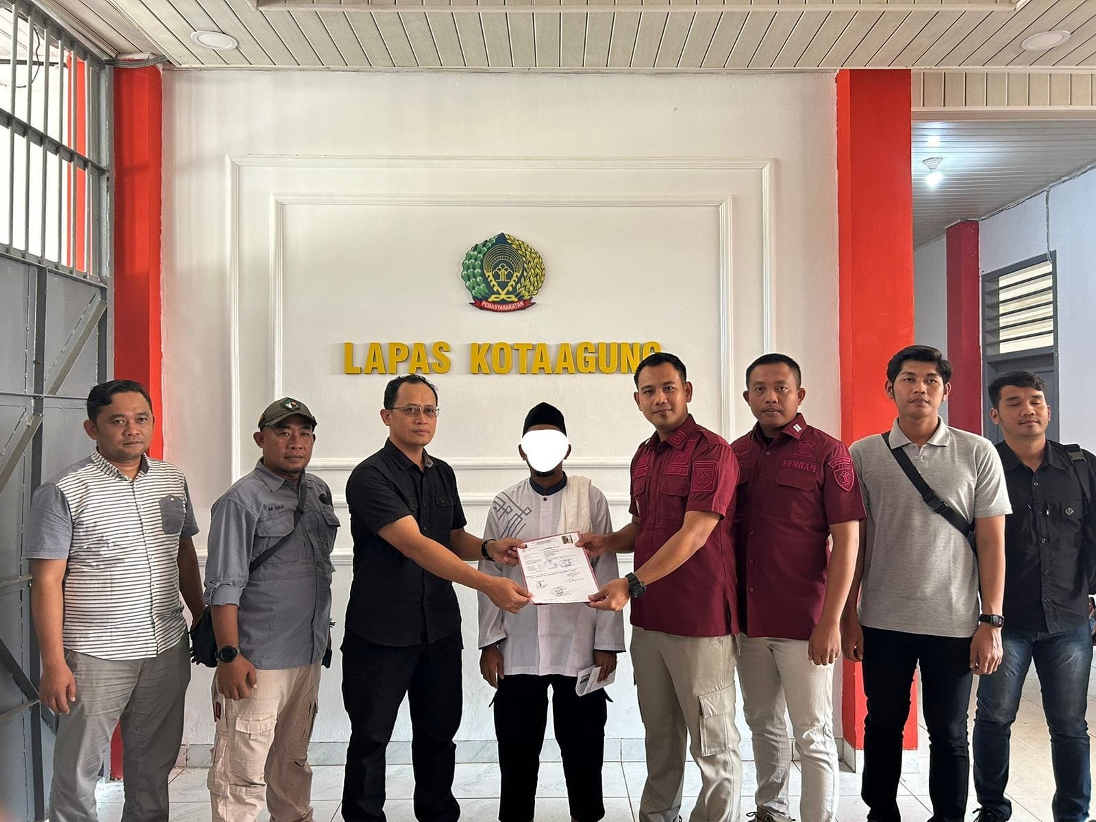 Kasi Administrasi Kamtib Rendy Julianto dan Staf KPLP Angga Pratama selaku Pamong Napiter bersama tim Idensos Satuan Tugas Wilayah (Satgaswil) Lampung Densus 88 Anti Teror sebanyak 3 (tiga) orang, Badan Nasional Penanggulangan Teroris (BNPT), Kodim 0424/Tanggamus, Polres Tanggamus dan Polsek Kotaagung yang hadir di Lapas Kotaagung turut melakukan pengawasan dan pengarahan kepada Napiter sebelum dibebaskan.