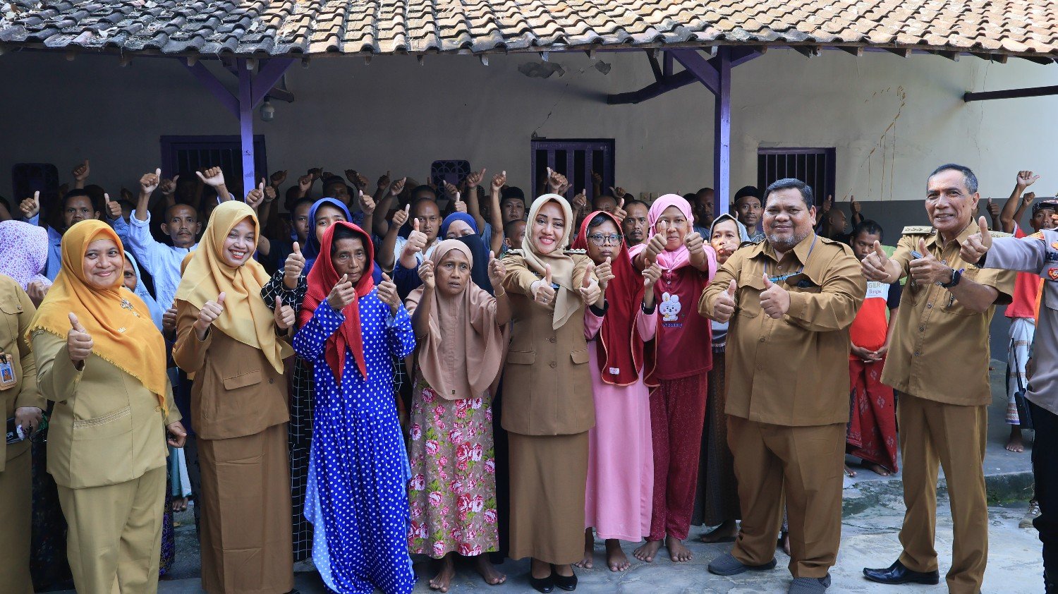 Pada pelaksanaan baksos kali ini, Bupati Ikfina pun menyerahkan secara simbolis bantuan berupa paket sembako, pakaian, dan berbagai perlengkapan lainnya kepada pemilik pondok 99 Sriasih.