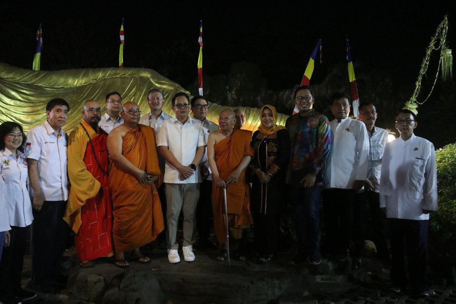 Kabupaten Mojokerto, majalahglobal.com – Bupati Mojokerto Ikfina Fahmawati bersama Pj Gubernur Jawa Timur Adhy Karyono menghadiri peringatan Trisuci Waisak bersama 2568 TB / tahun 2024 yang dilaksanakan di Maha Vihara Majapahit dan wisata Budha Tidur yang terletak di Desa Bejijong, Kecamatan Trowulan, Kabupaten Mojokerto, Kamis (23/5) malam.