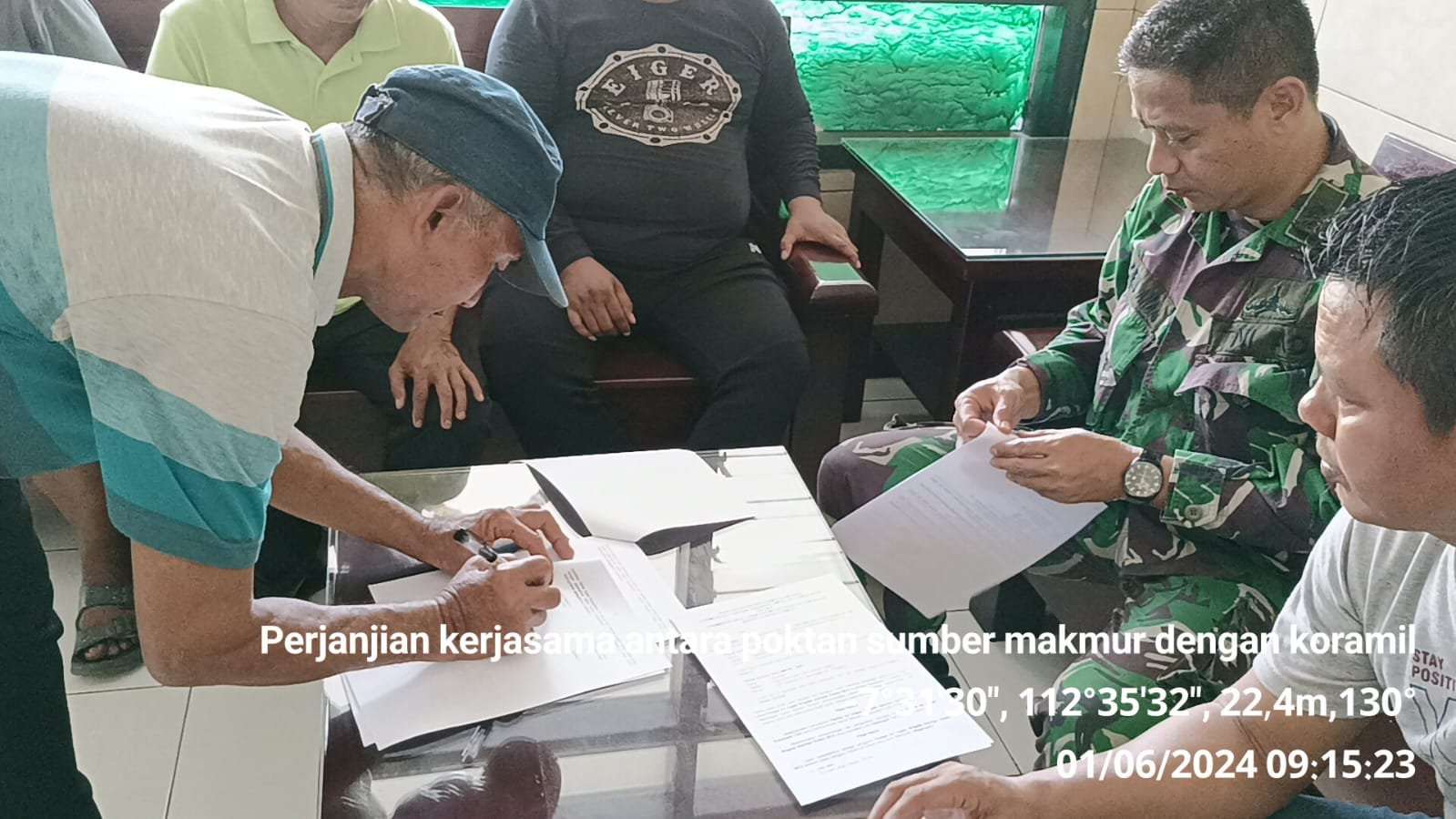 Pemasangan pompa air di lokasi pertanian tersebut dilaksanakan usai penyerahan dan penandatanganan serah terima administrasi oleh Pgs. Danramil 0815/11 Pungging Kapten Cba Khoirul Anam, S.Sos., kepada perwakilan Poktan Sumber Makmur Desa Jabontegal dan Poktan Tani Bahagia, Desa Watukenongo.