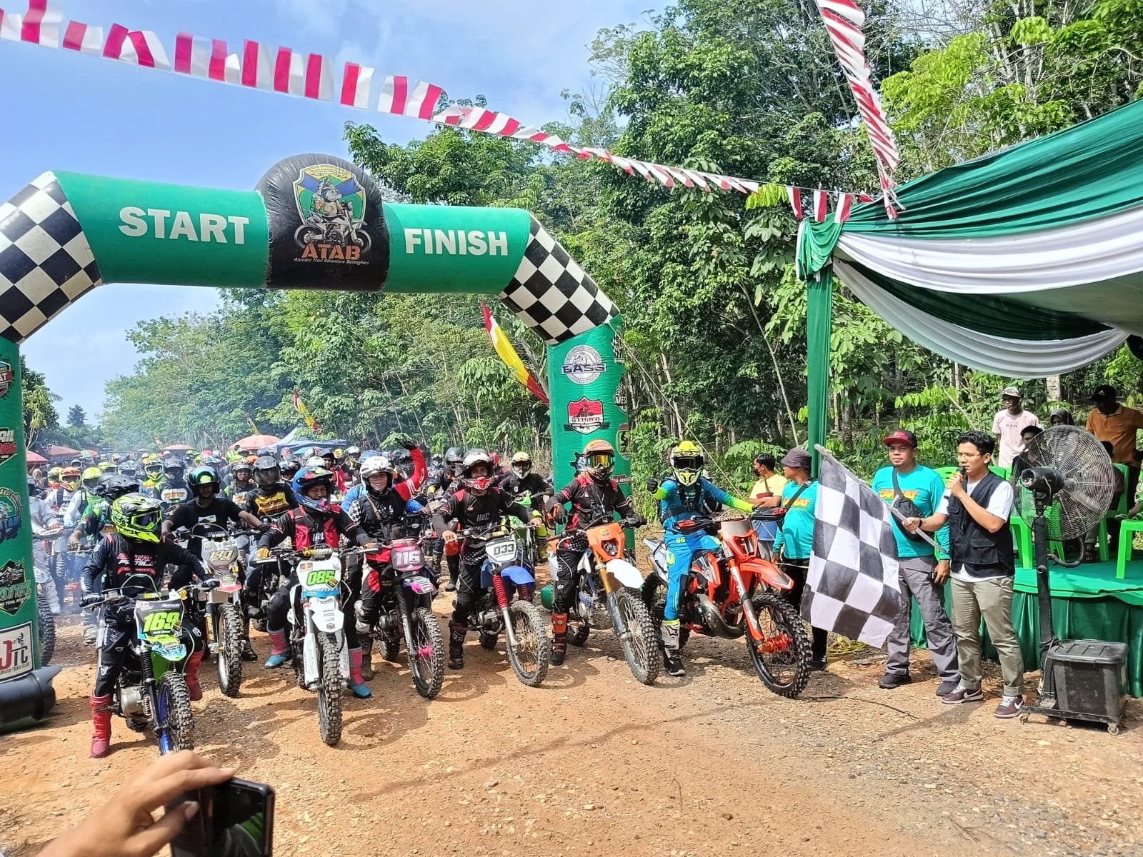 “Selamat menikmati jalur yang kami sediakan tetap dijaga keselamatan masing-masing kemudian tetap patuhi rambu-rambu yang ada di jalur sehingga bisa dapat sampai nanti finish di sini dengan selamat,” Tutupnya.