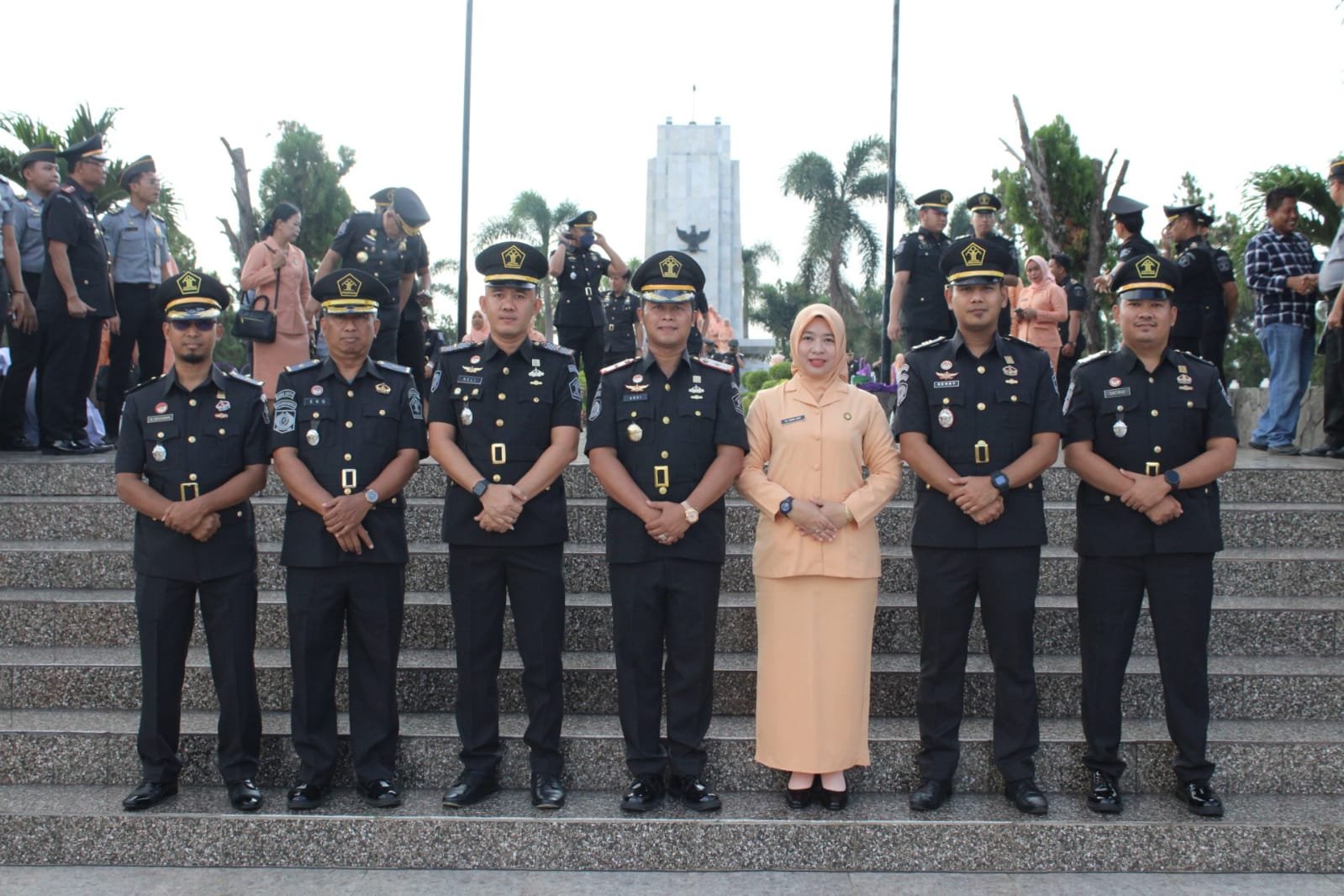 Andi Gunawan didampingi Ketua Dharma Wanita Persatuan Lapas Kotaagung Ny. Mirda Andi serta Kasubbag TU Eko Iswanto, Kasi Binadik dan Giatja Ardeli Permata, Kasi Administrasi Kamtib Rendy Julianto, Kaur Kepegawaian & Keuangan, dan Kaur Umum mengikut rangkaian upacara dengan khidmat dalam rangka Peringati Hari Pengayoman ke-79.