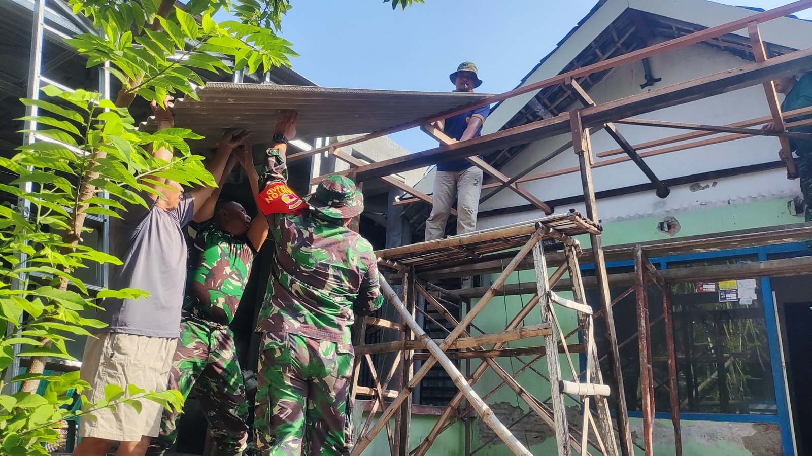 “Saat ini, di sasaran renovasi Rutilahu milik Pak Sukirman, anggota Satgas mulai persiapan memasang lantai ubin, yang sehari sebelumnya mereka juga telah menyelesaikan pemasangan atap rumah bagian depan”, ungkapnya.