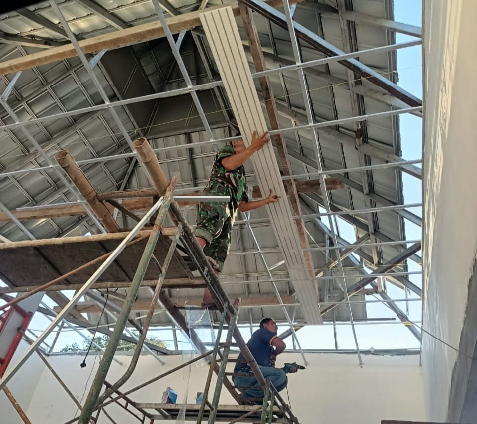 Pantauan di lokasi Satgas TMMD 121 hari ini,Ahad (28/08/2024), melakukan proses pemasangan plafon dan plesterisasi tembok dan beberapa pengerjaan lainnya.