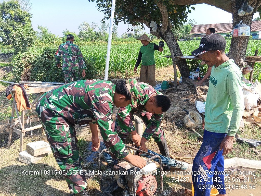 Kegiatan pendampingan dilakukan Babinsa Pagerluyung dengan memanfaatkan pompa air brigade Alsintan, untuk mengairi lahan jagung milik Bapak Sunar (55) seluas 2,1 Ha.