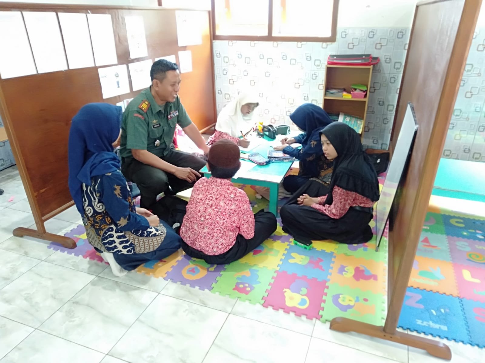 Mojokerto, – Danramil 0815/17 Trawas Kodim 0815/Mojokerto, Kapten Cba Kurniawan Junaedi berkunjung ke Sekolah Luar Biasa (SLB) Kirana Hati Bunda di Desa Tamiajeng, Kecamatan Trawas, Kabupaten Mojokerto, Jawa Timur, Kamis (05/09/2024).