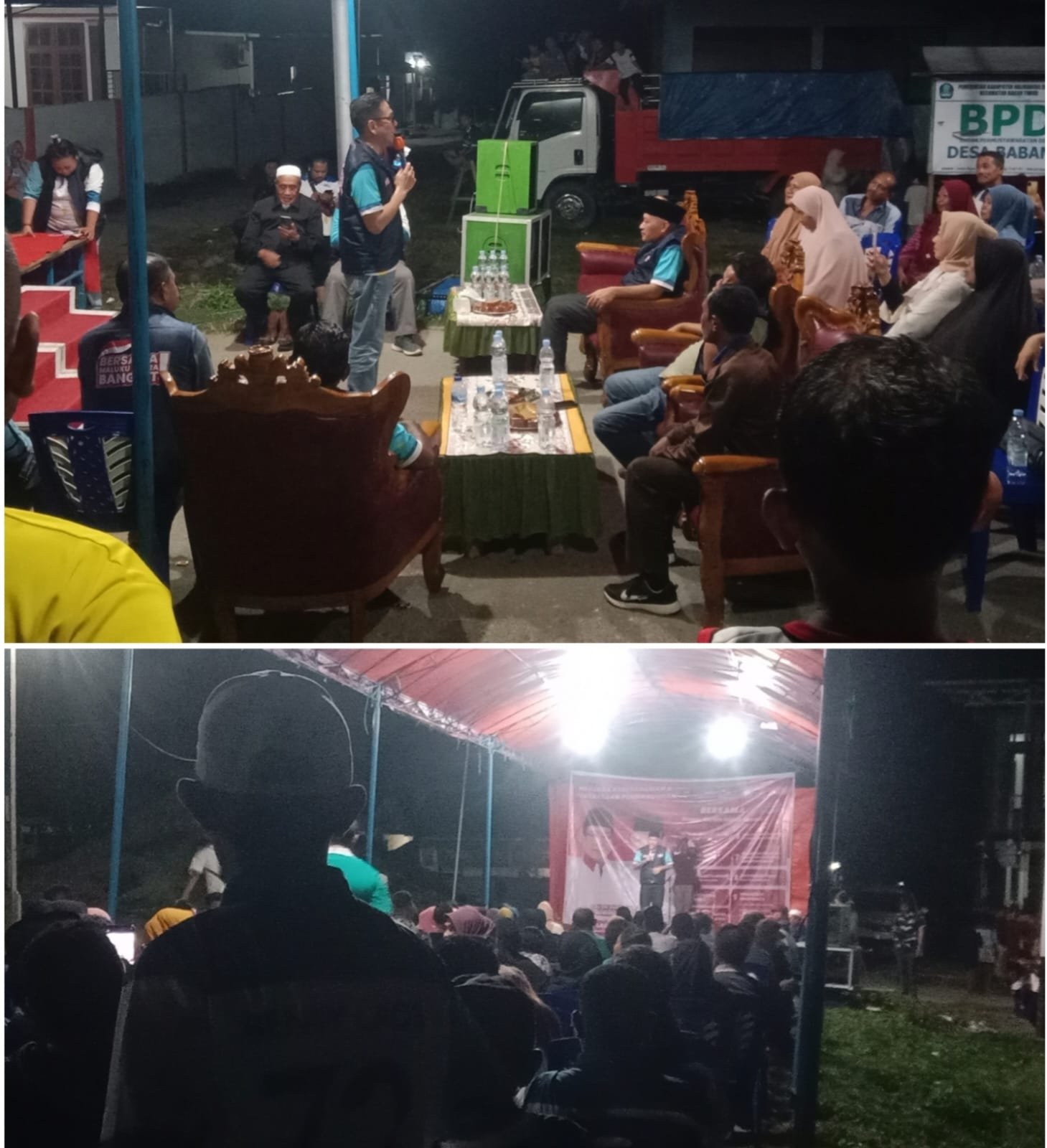 Halsel – Majalahglobal.com. Kunjungan silaturahmi (KS) calonkan Gubernur Maluku Utara, dan Calon Wakil Gubernur Maluku Utara. Benny Laos-Sarbin Sehe di Desa Babang Kecamatan Bacan Timur Kabupaten Halmahera Selatan, mendapat sambutan hangat dari ratusan Masyarakat setempat meminta agar terpilih nanti memberikan pendidikan dan kesehatan gratis tampa punggutan.