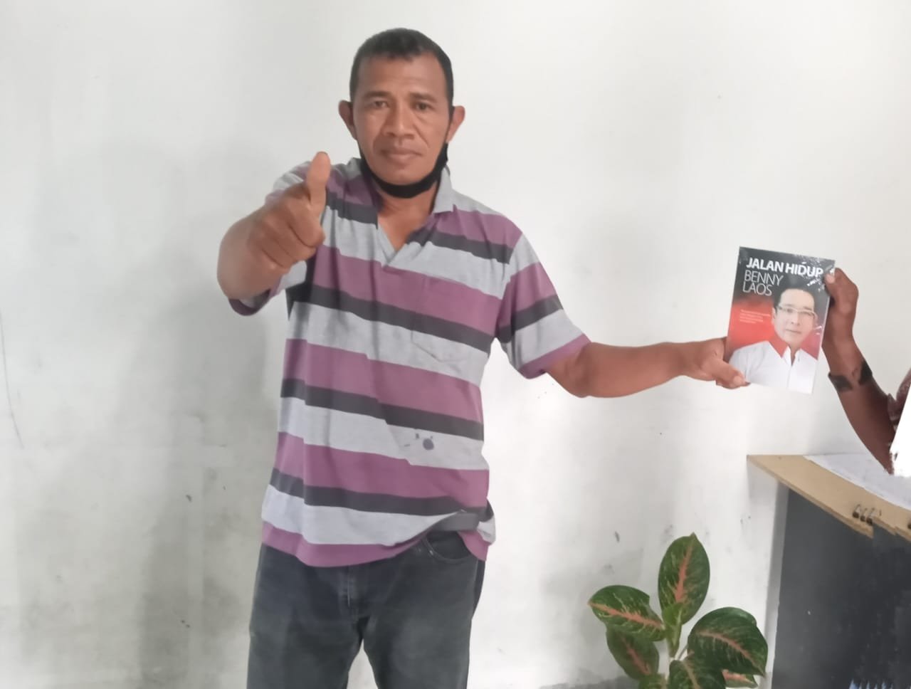 Hal ini terlihat jelas kades Wayamiga Hudawi Kader Samual, menerima dan memegang sebuah buku yang di serahkan kepadanya terpampar wajah Benny Laos selaku calon gubernur Maluku Utara, itu sambil mengangkat jari jempolnya diduga sebagai isyarat siap mendukung dan memenangkan Cagub tersebut.