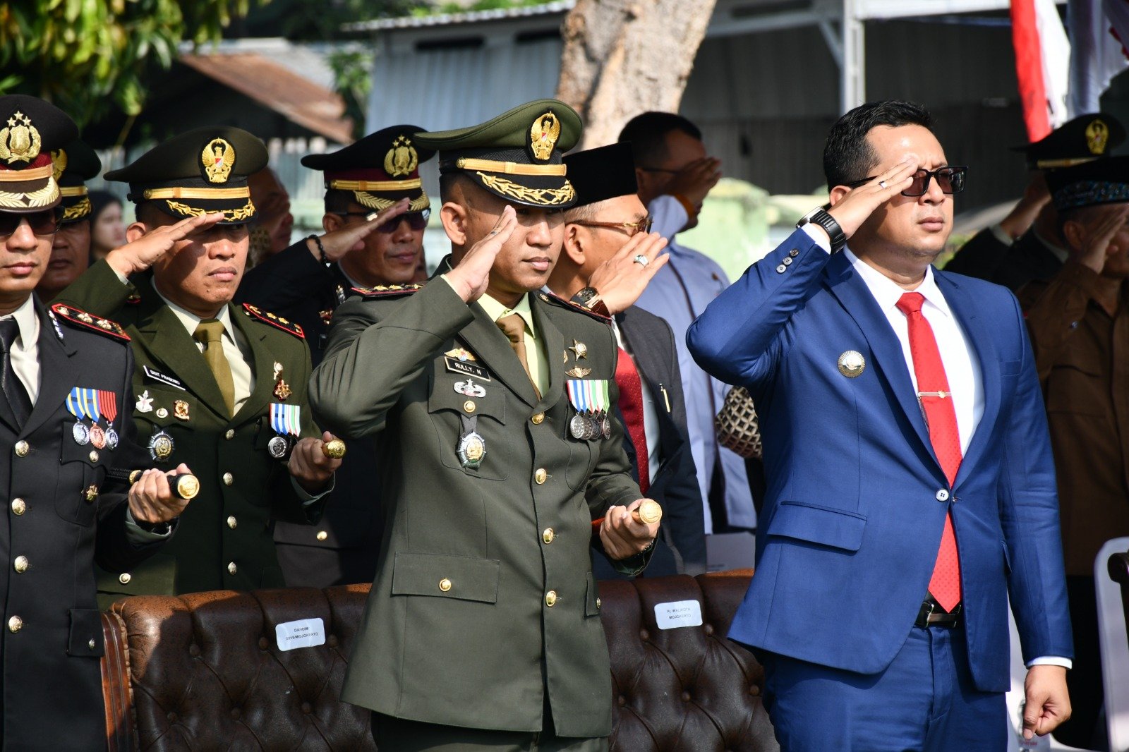 Kegiatan yang dihadiri Dandim 0815/Mojokerto Letkol Inf Rully Noriza, S.I.P., M.I.P., beserta Forkopimda Mojokerto Raya dan segenap tamu undangan ini, juga diikuti ratusan peserta upacara dari TNI-Polri, PNS TNI AD, Dishub, Polisi Pamong Praja Kota dan Kabupaten Mojokerto, FKPPI serta anggota Pramuka.