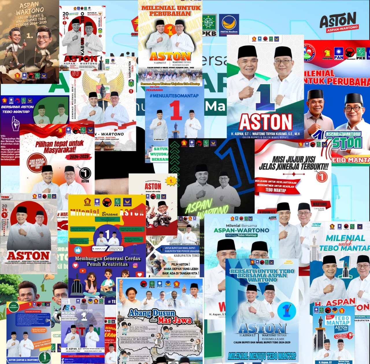 Tebo.majalahglobal.com – Lomba desain poster untuk mendukung pasangan calon Bupati dan Wakil Bupati, Aspan dan Wartono, disambut antusias oleh puluhan peserta dari kalangan milenial. Kompetisi ini digelar sebagai bentuk dukungan terhadap generasi muda yang memiliki semangat dan kreativitas tinggi dalam mendukung proses demokrasi di daerah.