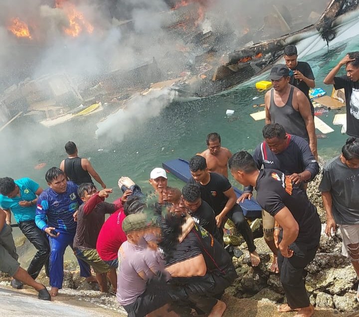 Melihat adanya kebakaran Speed Boat tersebut, personel gabungan TNI-Polri bersama pemadam kebakaran yang dibantu masyarakat langsung melakukan pemadaman api dan evakuasi korban ke fasilitas Kesehatan terdekat untuk mendapat pertolongan pertama.