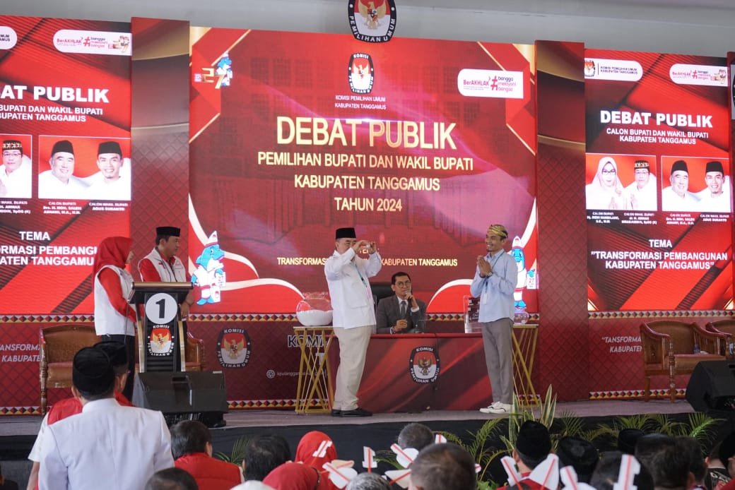 “Maksud dari kegiatan debat publik ini adalah untuk memberikan kesempatan kepada paslon dalam memberikan informasi kepada masyarakat, yaitu visi misi dan program kerja saat terpilih nanti sebagai bupati dan wakil bupati Tanggamus,”ujar Habibi.