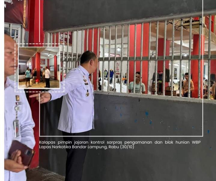 Bandar Lampung, majalahglobal.com – Kalapas Ade Kusmanto pimpin jajaran kontrol sarpras pengamanan dan blok hunian WBP Lapas Narkotika Bandar Lampung, Rabu (30/10).
