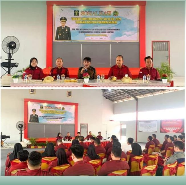 LAMPUNG, majalahglobal.com – Lapas Perempuan Kelas IIA Bandar Lampung ikuti pengarahan dan sosialisasi terkait Implementasi PP.No 94 Tahun 2021 tentang Disiplin Pegawai Negeri Sipil yang bertempat di Lapas Narkotika Kelas IIA Bandar Lampung pada Kamis (31/10).