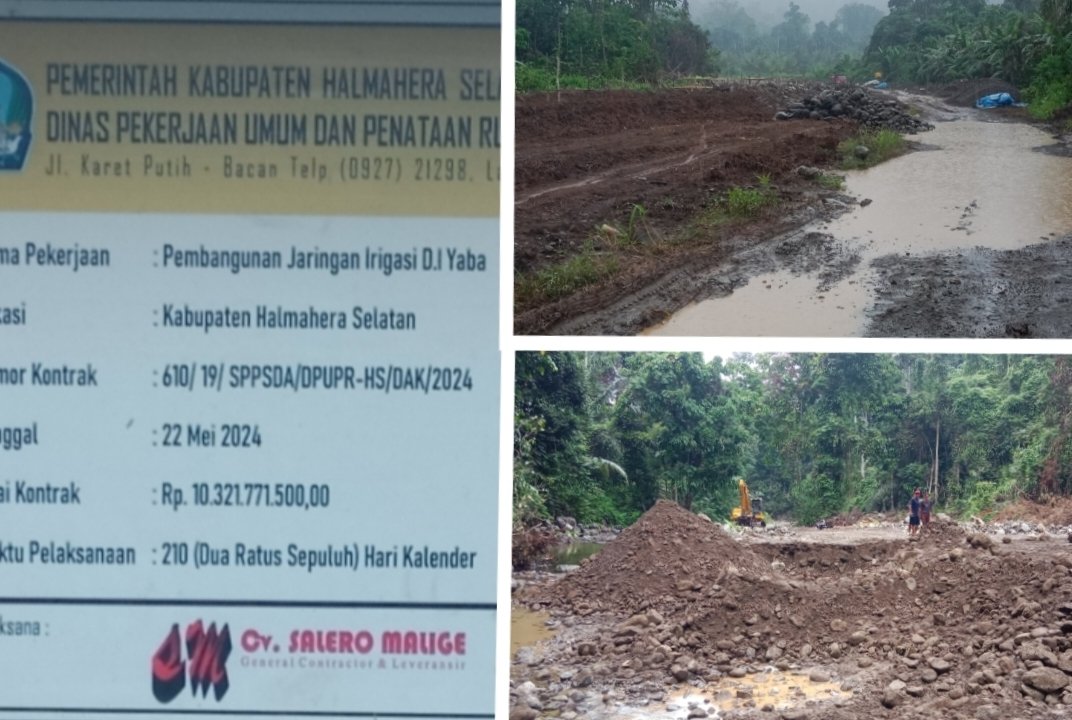 Halsel – Majalahglobal.com. Proyek pembangunan jaringan irigasi yang berloksi di Desa Yaba Kecamatan Bacan Barat Utara, Kabupaten Halmahera Selatan. Provinsi Maluku Utara. Dikerjakan CV. SALERO MALIGE (CV.SM) dengan besaran anggaran mencapai belasan miliaran rupiah itu diduga direktur dan kepala dinas pekerjaan umum dan penataan ruang (DPUPR) Halsel terlibat melakukan tindak pidana korupsi.