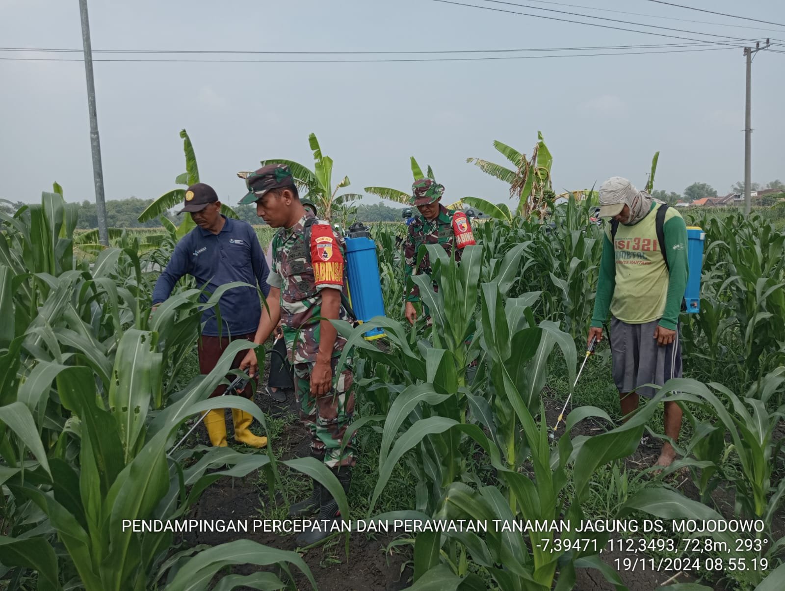 Hal tersebut disampaikan Danramil 0815/06 Kemlagi Lettu Inf Sudirman, S.H., saat memonitor pelaksanaan kegiatan pendampingan para Babinsa dalam perawatan tanaman jagung di Desa Mojodowo, Kecamatan Kemlagi, Kabupaten Mojokerto, Jawa Timur, Selasa (19/11/2024).