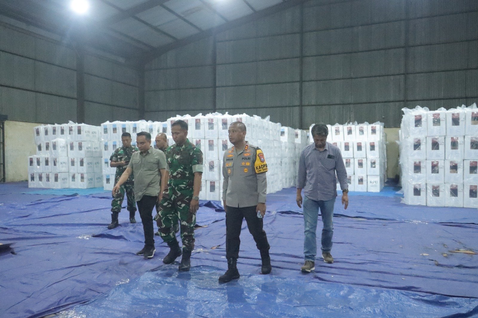 Pada kegiatan ini, Dandim 0815/Mojokerto Letkol Inf Rully Noriza, S.I.P., M.I.P., bersama Kapolres Mojokerto AKBP Dr. Ihram Kustarto, S.H., S.I.K., M.Si., M.H., beserta jajaran Juga melakukan pemantauan langsung di Gudang Logistik KPU yang berada di Gudang Bulog Jalan RA Basoeni, Kecamatan Sooko.