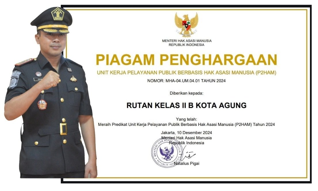 “Semoga dengan diraihnya predikat Unit Kerja Pelayanan Publik Berbasis HAM (P2HAM) ini bisa memupuk kepercayaan masyarakat bahwa Rutan Kota Agung selalu ingin memberikan pelayanan prima bagi masyarakat,”pungkas nya.