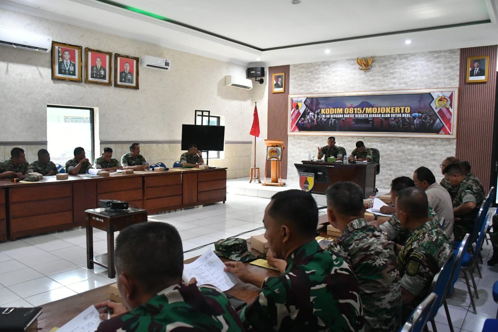 Sidang Pankar ini dihadiri Kasdim Mayor Arh GN Putu Ardana, S.S., para Perwira Staf Kodim 0815/Mojokerto, Danramil jajaran serta Bati Tuud masing-masing Koramil.