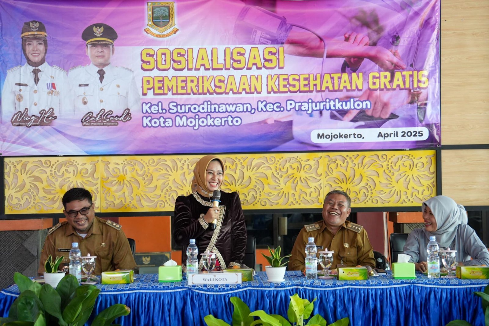 Kota Mojokerto – Kesehatan merupakan pondasi utama dalam mewujudkan Generasi Emas 2045. Hal tersebut disampaikan Wali Kota Mojokerto, Ika Puspitasari, dalam kegiatan Sosialisasi Pemeriksaan Kesehatan Gratis (PKG) di Pendopo Kelurahan Surodinawan, Kecamatan Prajurit Kulon, Senin (21/4/2025).