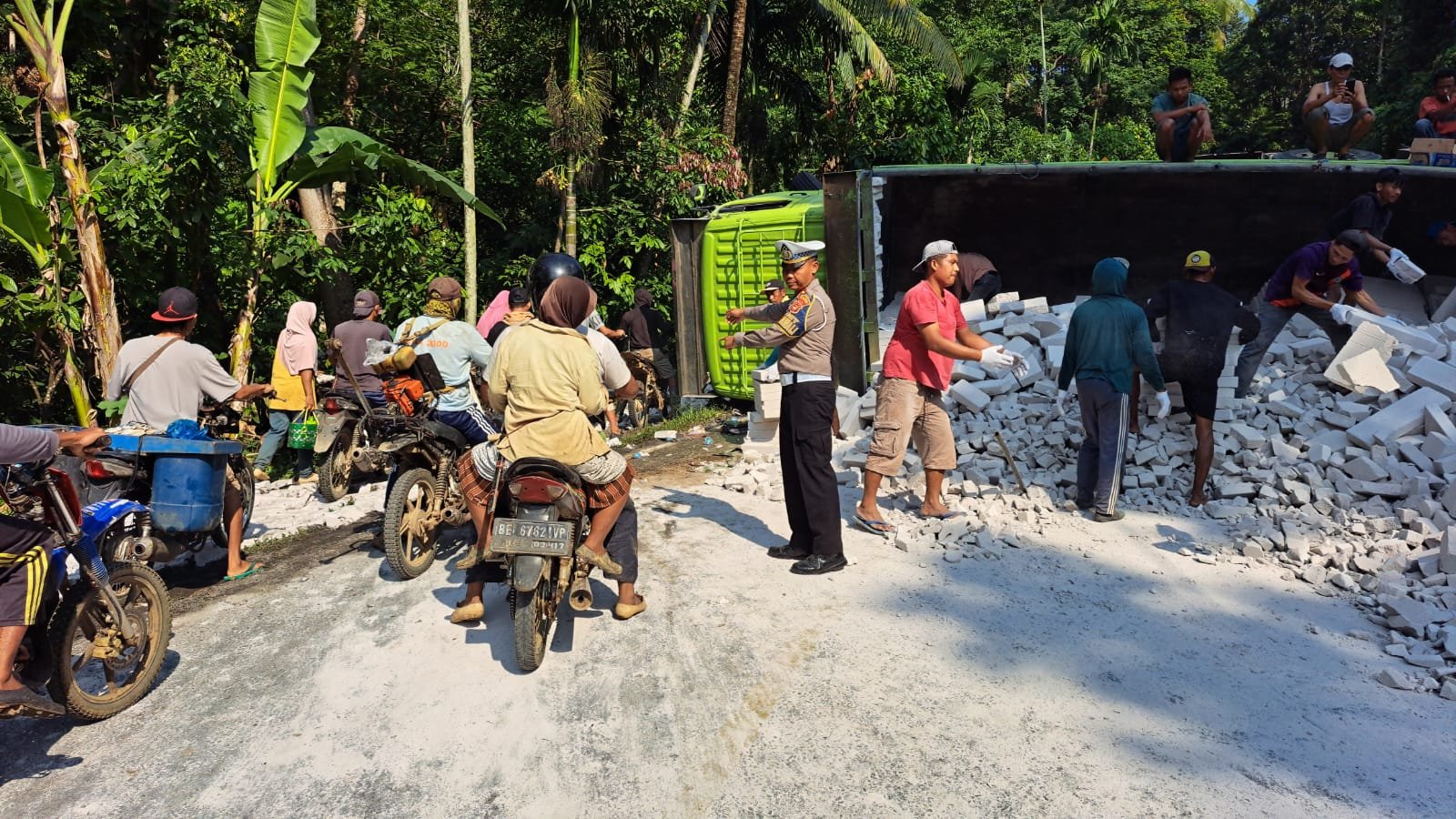 Insiden ini terjadi sekitar pukul 07.00 WIB dan melibatkan kendaraan berat jenis Hino Tronton dengan nomor polisi BD 8529 AF.
