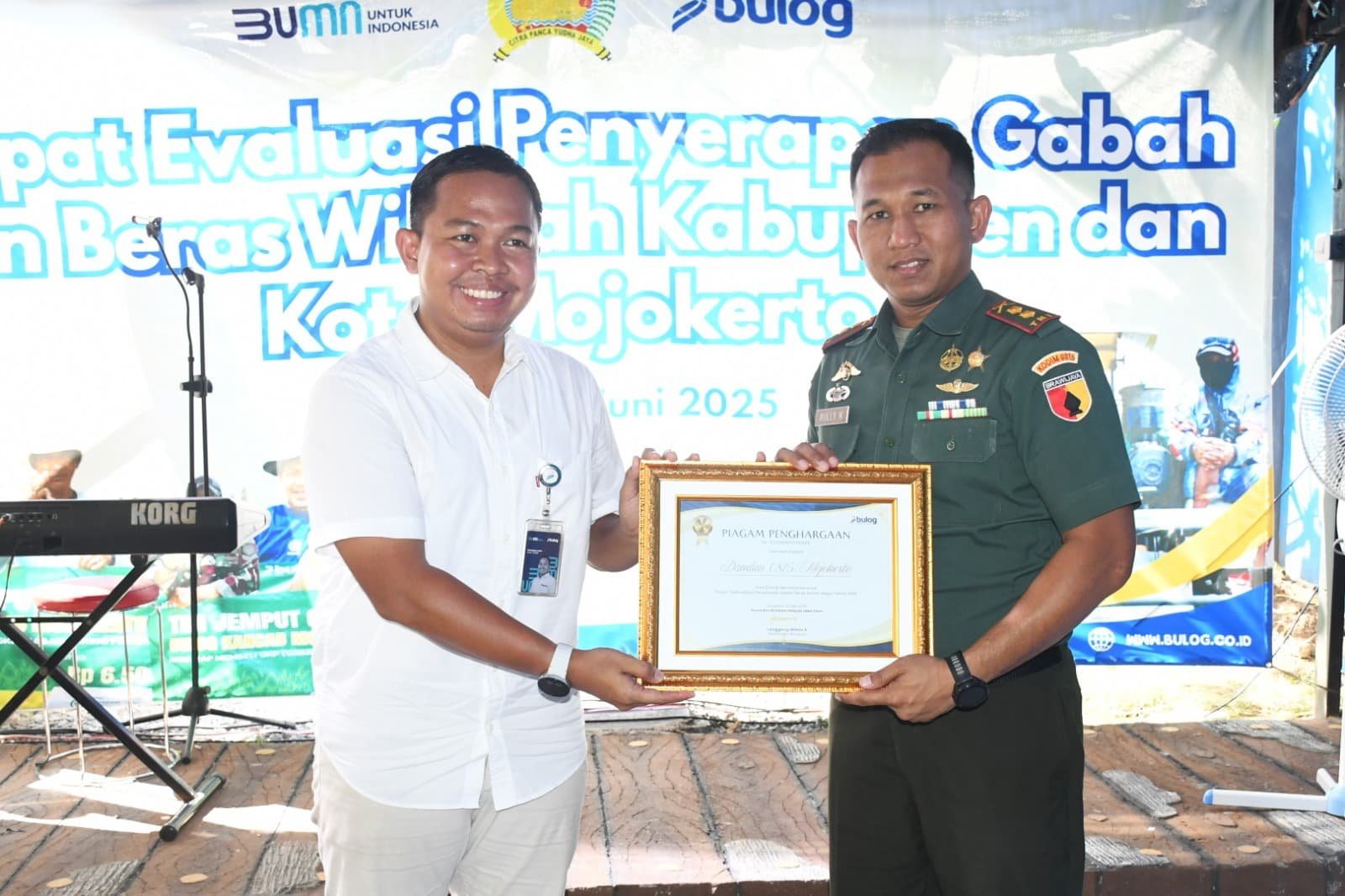 Penghargaan ini diserahkan secara langsung Kepala Kancab Bulog Mojokerto, Muhammad Husin, S.H, M.H., kepada Dandim 0815/Mojokerto Letkol Inf Rully Noriza, S.I.P., M.I.P., di Black Café, Jalan Raya Prajurit Kulon Nomor 10, Kelurahan Pralon, Kecamatan Pralon, Kota Mojokerto, Jawa Timur, Rabu Selasa (03/06/2025).
