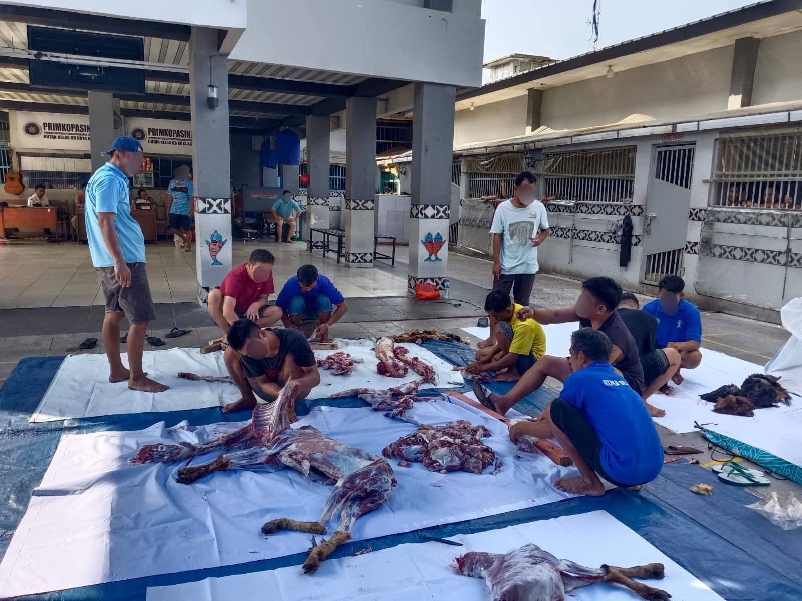 Daging qurban kemudian dibagikan kepada seluruh Warga Binaan, sebagai bentuk kepedulian dan kebersamaan dalam momen Idul Adha ini. Panitia pelaksana telah mengatur pembagian dengan tertib agar seluruh penerima dapat merasakan berkah dari qurban tersebut.