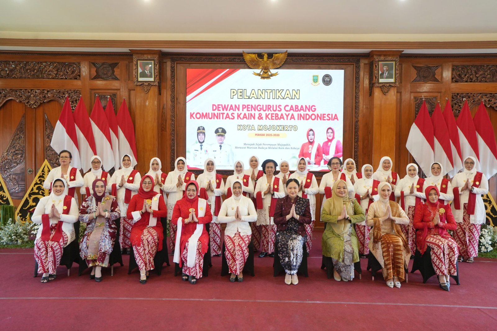 Kota Mojokerto — Wali Kota Mojokerto Ika Puspitasari secara langsung hadir dalam pelantikan Dewan Pengurus Cabang (DPC) Komunitas Kain dan Kebaya Indonesia (KKI) Kota Mojokerto yang berlangsung di Ruang Sabha Mandala Madya, Balai Kota Mojokerto pada Rabu (16/7).