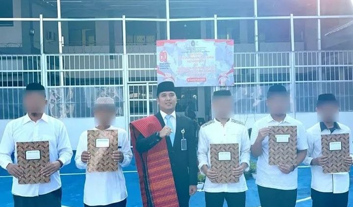 Kotabumi, majalahglobal.com – Rumah Tahanan Negara (Rutan) Kelas IIB Kotabumi menggelar acara pemberian remisi bagi Warga Binaan Pemasyarakatan (WBP), seusai pelaksanaan upacara bendera peringatan Hari Ulang Tahun (HUT) ke-80 Republik Indonesia, Minggu (17/8/2025).
