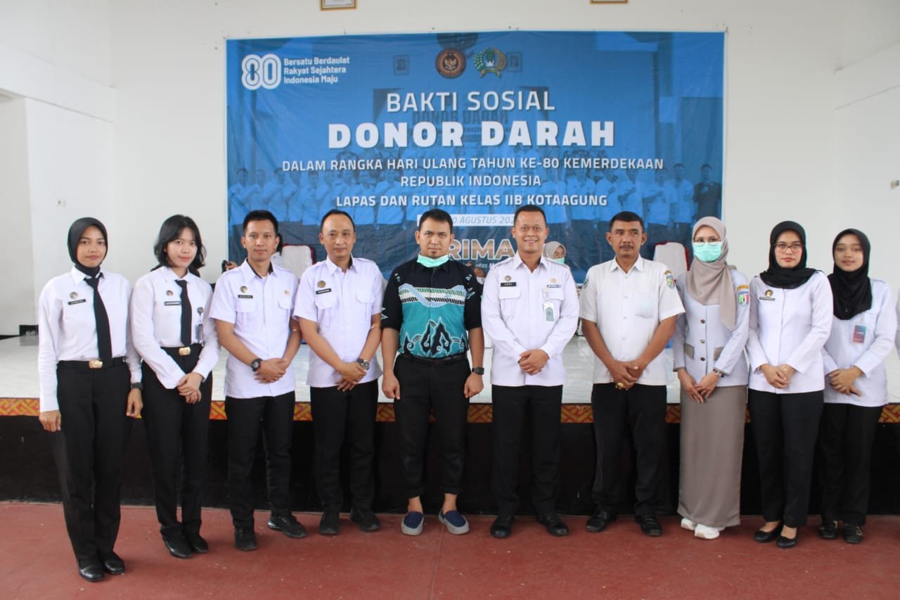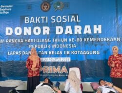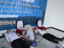 KOTAAGUNG, majalahglobal.com – Dalam rangka memperingati HUT ke-80 Kemerdekaan Republik Indonesia, Lembaga Pemasyarakatan (Lapas) Kelas IIB Kotaagung bersama Rumah Tahanan Negara (Rutan) Kelas IIB Kotaagung menggelar kegiatan donor darah sebagai bentuk kepedulian sosial dan kemanusiaan. Kegiatan ini diselenggarakan pada Rabu (20/8/2025) di Aula Lapas Kelas IIB Kotaagung, bekerja sama dengan Unit Transfusi Darah (UTD) RSUD Pringsewu. Momentum kemerdekaan dijadikan kesempatan untuk memberikan kontribusi nyata kepada masyarakat melalui aksi solidaritas yang bermanfaat.