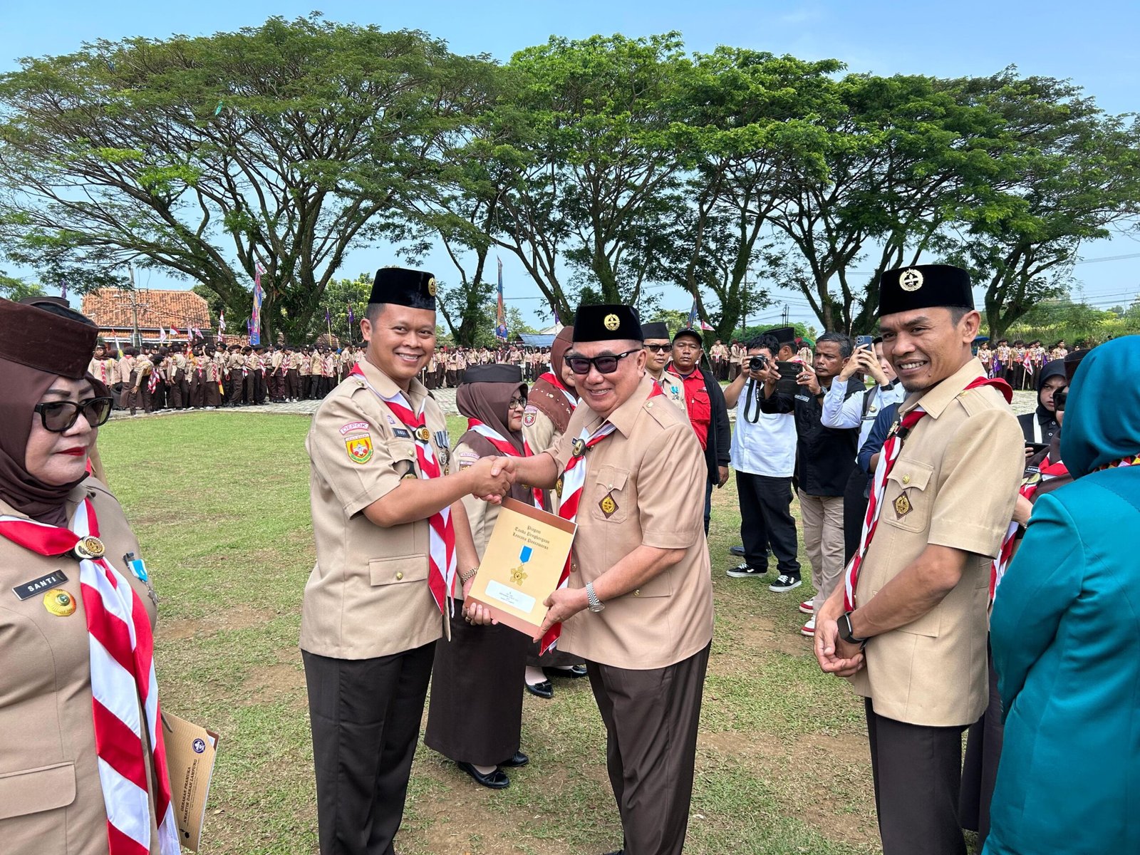 Kalapas Kelas IIB KotaAgung Terima Penghargaan Pancawarsa I dari Bupati Tanggamus dalam Apel Besar Pramuka ke-64 Tahun 2025