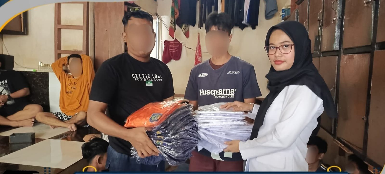 Adapun jumlah baju yang dibagikan yaitu 256 pcs Baju DIS Narapidana, 84 pcs Baju DIS Tahanan, dan 340 pcs Baju Koko untuk warga binaan.