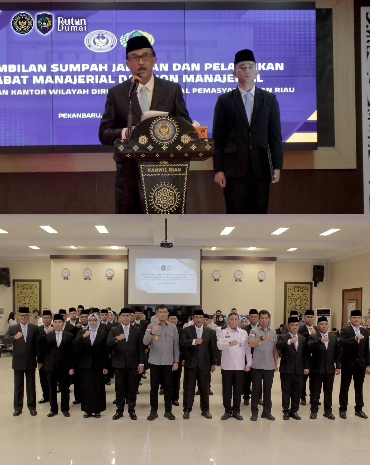 Pelantikan berlangsung khidmat dengan dihadiri langsung oleh Kepala Kantor Wilayah Direktorat Jenderal Pemasyarakatan (Ditjenpas) Riau, Maizar, serta para pejabat struktural, perwakilan instansi, dan Kepala UPT Pemasyarakatan se-Riau.