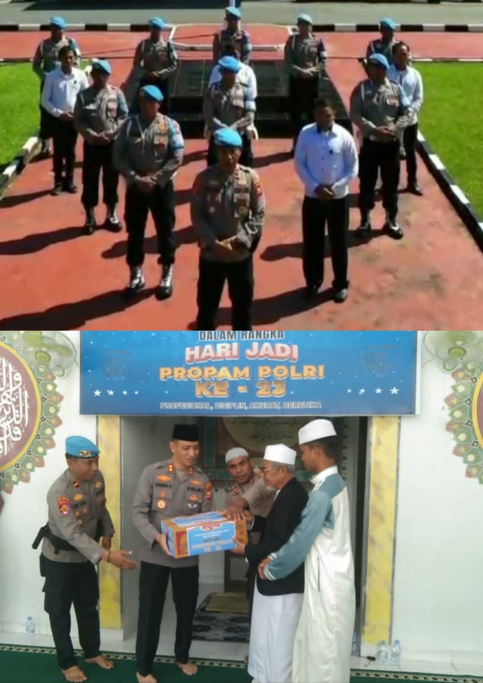 Halsel – Hari Jumat tanggal 17 Oktober 2025 Sipropam polres Halsel mengelar syukuran HUT PROPAM POLRI ke 23 tahun, bertempat di moshola polres Halmahera Selatan, dalam giat syukuran ini dihadiri oleh pimpinan ponpes Al Ka’fi Desa Hidayat dan puluhan santri anak yatim piatu.