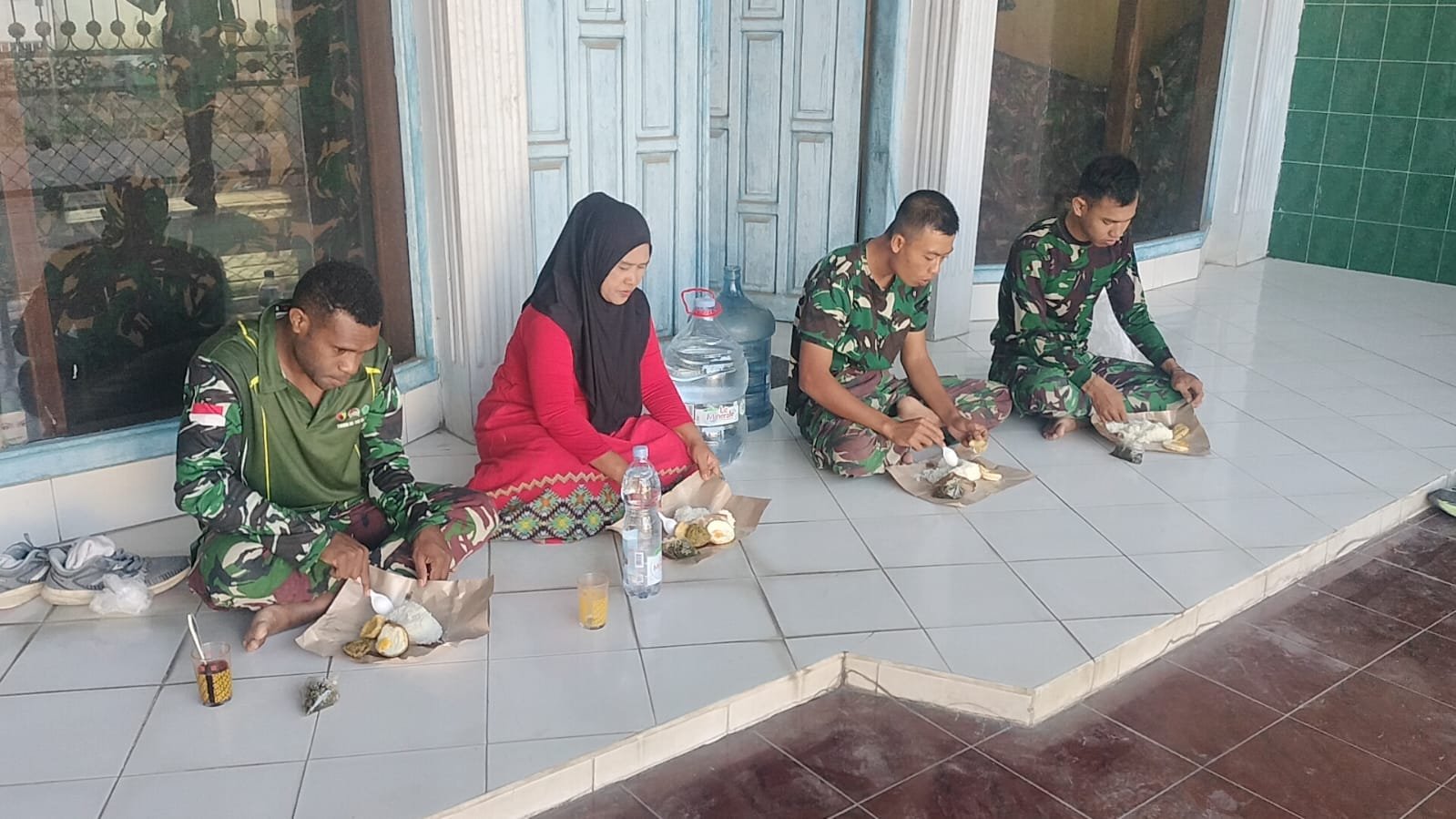 Dengan menu sederhana khas rumahan berupa nasi putih, telur ceplok, sambal, tahu, dan tempe, suasana makan bersama di teras rumah itu terasa hangat. Ibu Nurul (43), yang tinggal bersama satu anggota keluarga lainnya, mengaku senang rumahnya menjadi tempat beristirahat bagi para prajurit. “Saya merasa bangga dan senang bisa membantu. Semoga silaturahmi ini terus terjalin meski nanti TMMD sudah selesai”, ujarnya.