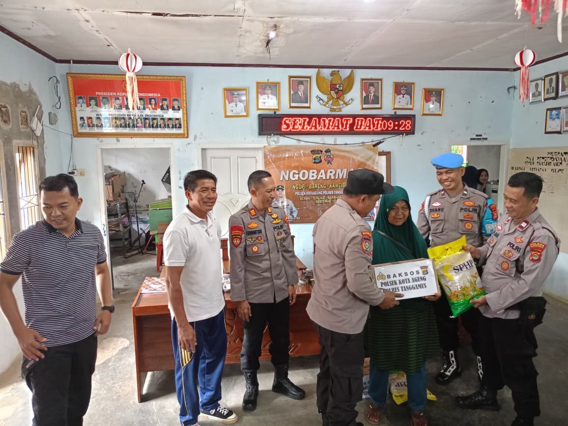 Dalam kegiatan itu, jajaran Polsek Kota Agung menyerahkan paket bahan pokok kepada warga yang membutuhkan, terutama kalangan lanjut usia dan penyandang disabilitas. Warga penerima bantuan tampak antusias dan menyampaikan rasa syukur atas perhatian yang diberikan pihak kepolisian.