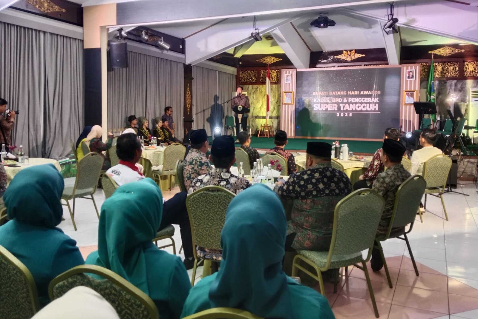 Batang Hari,majalahglobal.com – Bupati Batang Hari, Mhd Fadhil Arief memberikan penghargaan Batang Hari Super Tangguh Award tahun 2025, untuk Kepala Desa (Kades),Badan Permusyawaratan Desa (BPD) dan Penggerak Pemberdayaan Kesejahteraan Keluarga (PPK), sebagai apresiasi kinerja dan inovasi, dengan penilaian Objektif mulai dari administrasi, wawancara, hingga persentasi, program untuk memotivasi peningkatan pelayanan dan pembangunan di desa, acara berempat di Ruang kaca Rumus Bupati Batang Hari, pada Sabtu malam (06/12/2025)