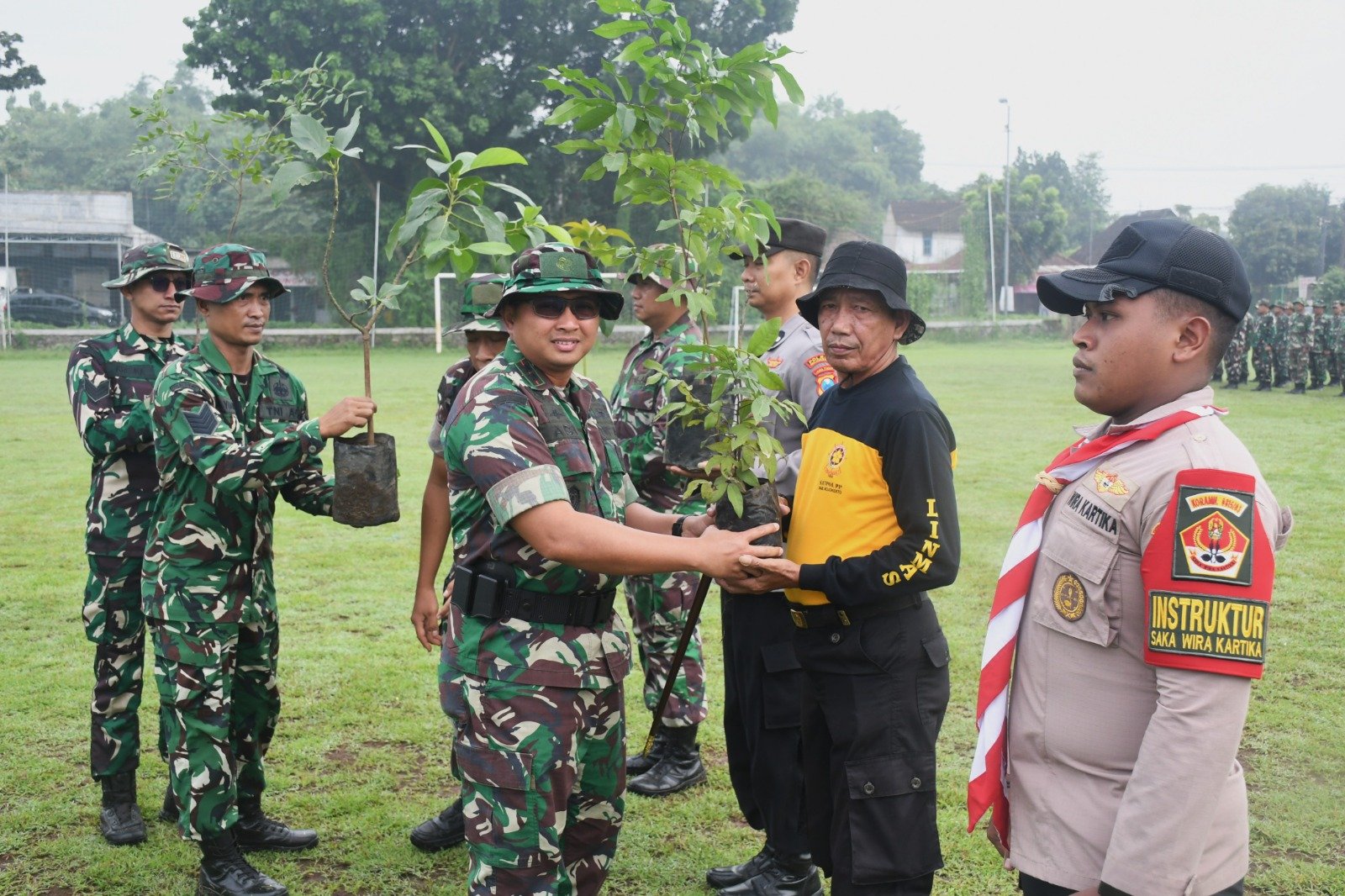 Tampak hadir dalam kegiatan, Kasdim 0815 Mayor Inf Suwadi, Pasi Bhakti TNI Korem 082/CPYJ Mayor Inf Bambang, Kasub Kogartap 0815 Mayor Cpm Abdurrahman, para Pasi Kodim 0815, para Danramil jajaran Kodim 0815/Mojokerto; Forkopimcam Sooko, Ketua KUA Sooko Mujib Ridwan, para Kepala Desa se-Kecamatan Sooko, serta tamu undangan lainnya. Kehadiran para tokoh dan pemangku kepentingan tersebut semakin menegaskan kuatnya dukungan kolektif untuk menjaga kelestarian lingkungan melalui aksi penanaman pohon. (Jay)